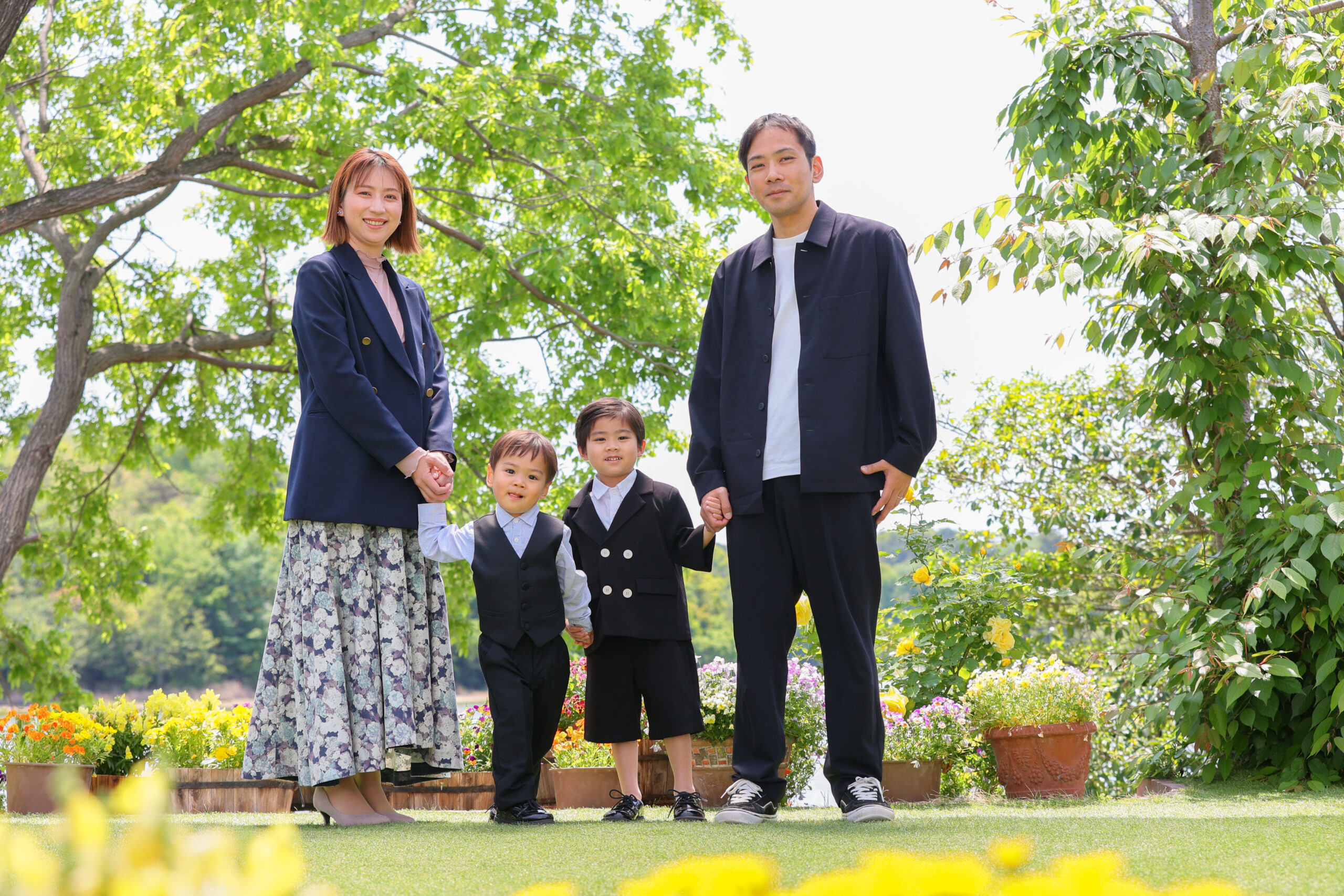 最後に、ネイビーのスーツについて考えてみましょう。ネイビーはフォーマルさとカジュアルさを兼ね備えており、多くのシーンで活用できる色です。七五三の家族写真においても、ナチュラルでありながらもきちんとした印象を与えることができます。また、ネイビーはどの色のシャツやネクタイとも合わせやすく、カラーコーディネートの幅が広がるのが魅力です。