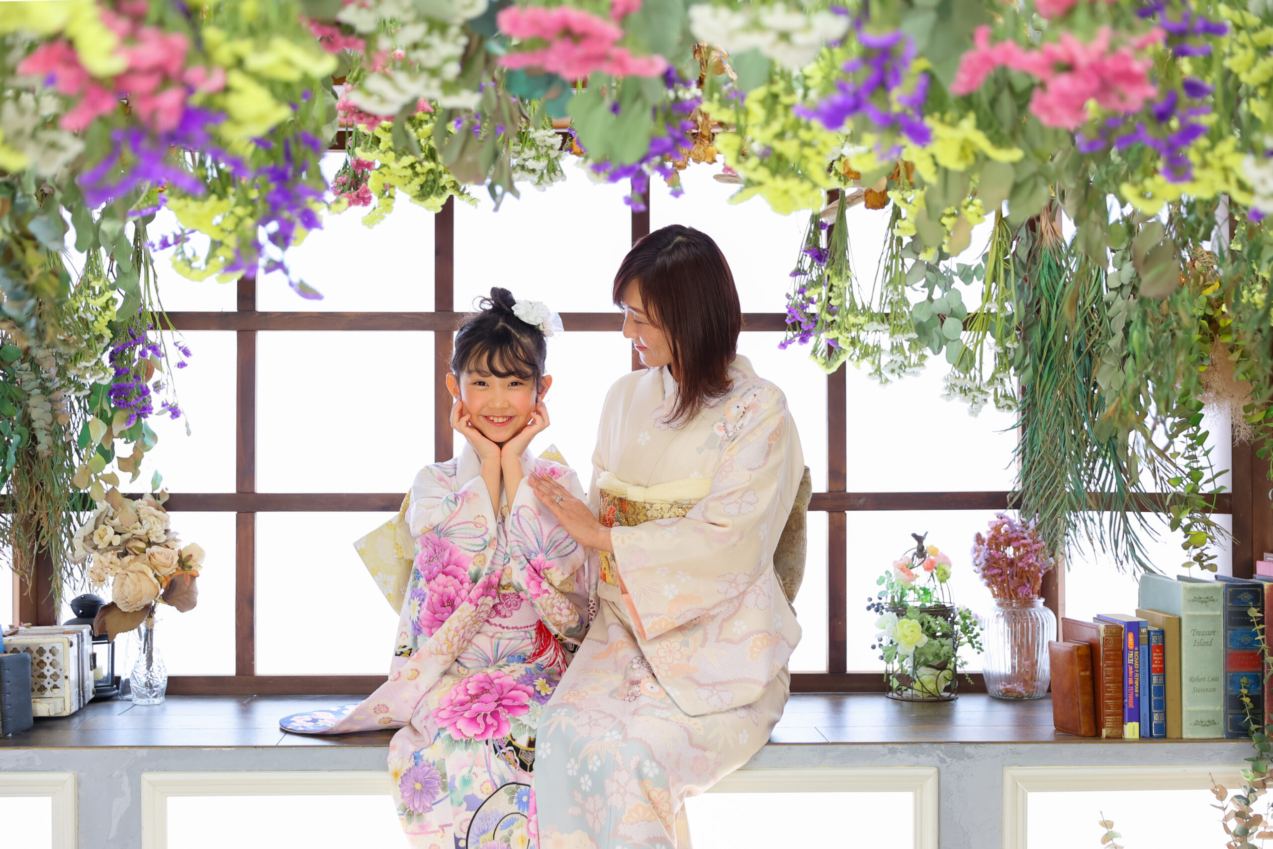 和装で家族写真を華やかに演出