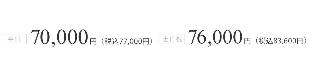 • 撮影基本料金は平日77,000円(税込)休日83,600円(税込)です。