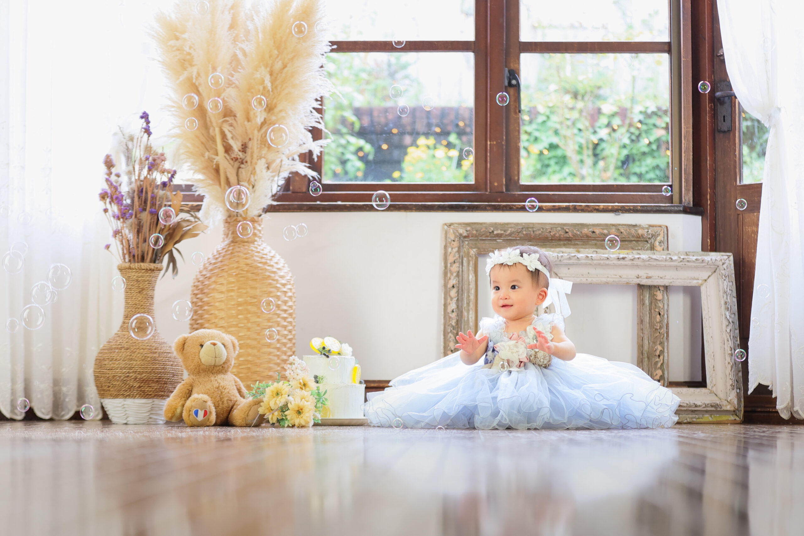 自然たっぷりなイメージの背景でお写真をお撮りします。